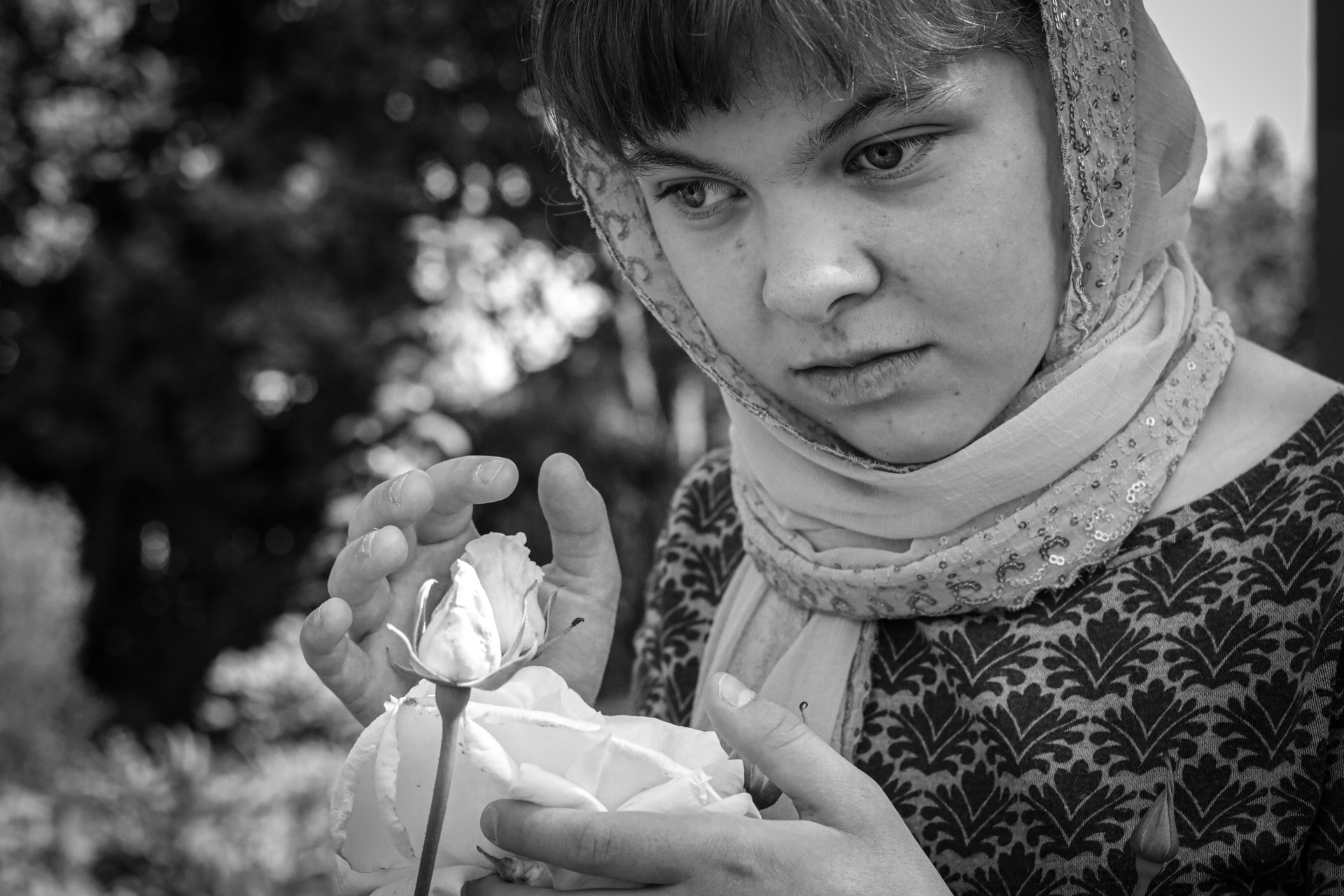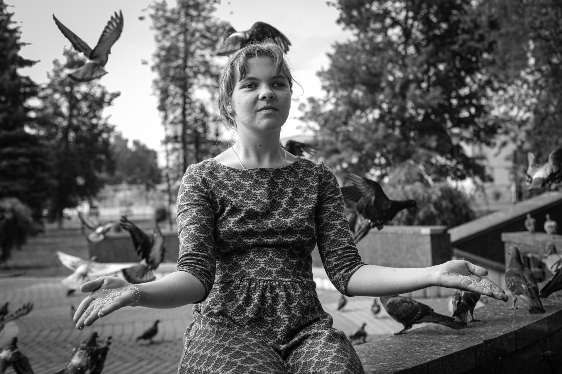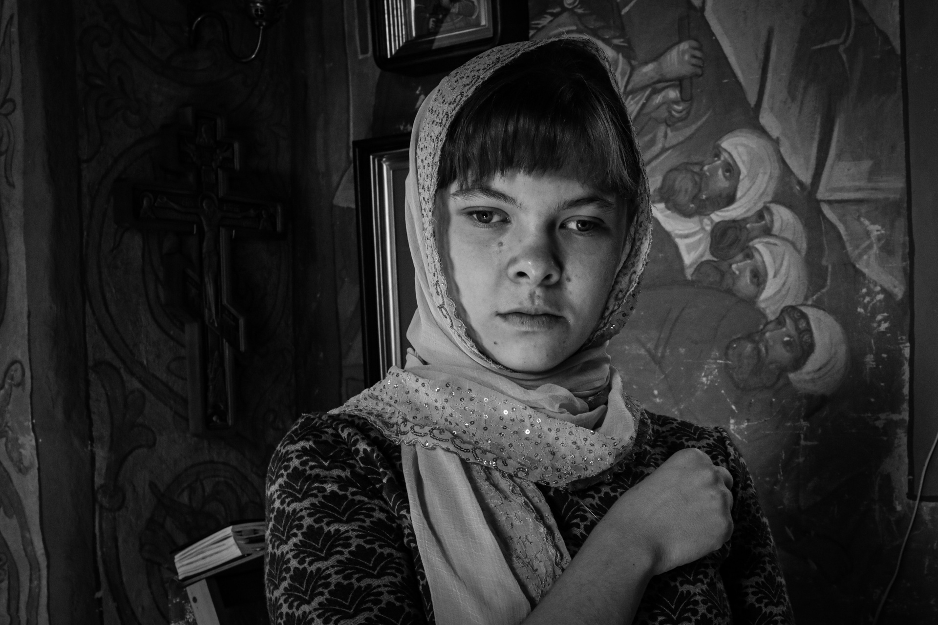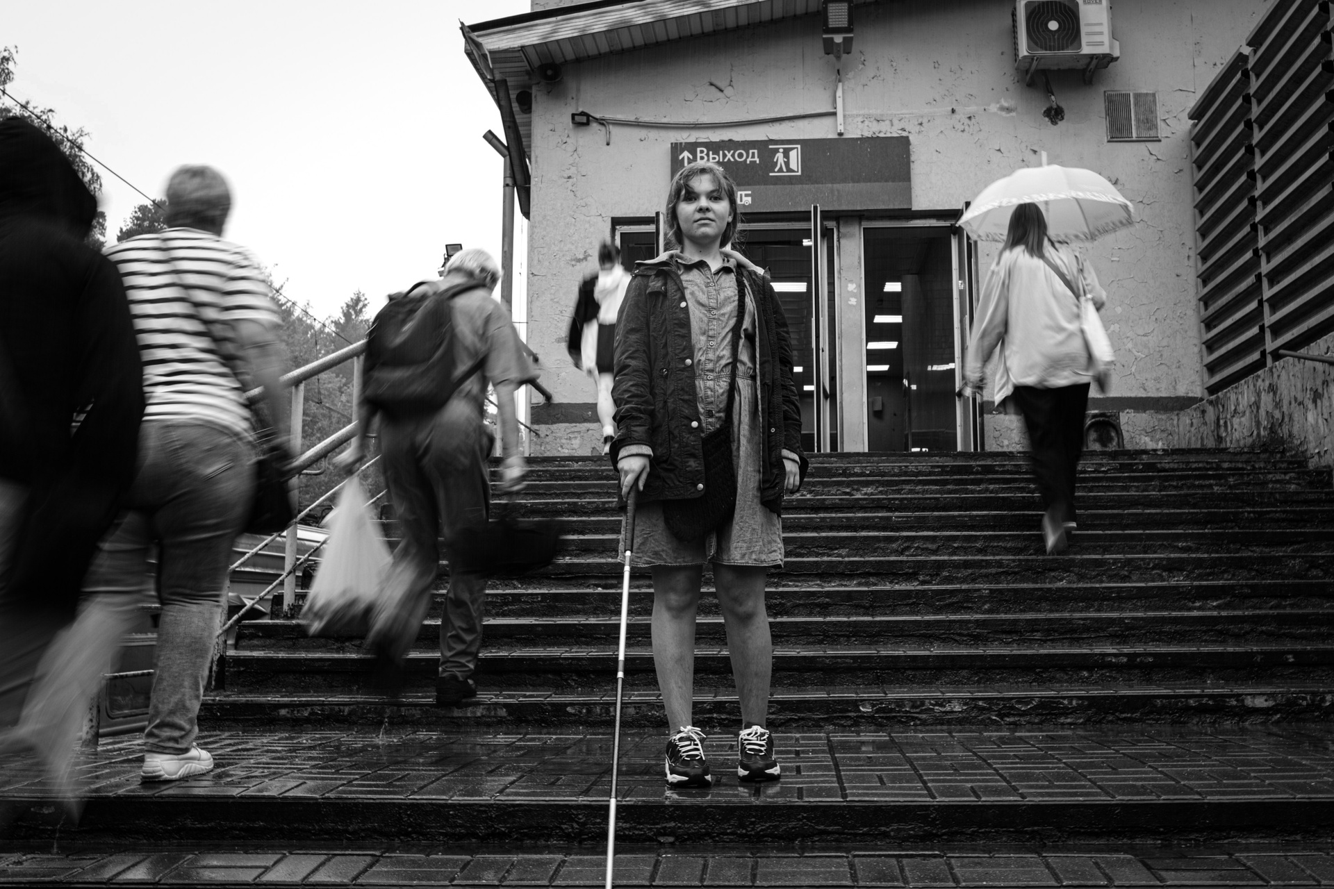 В серии «НА ОЩУПЬ» отражена история о слепой девушки Маши. На момент фотосъёмки ей 20 лет, она из Подмосковного города Ивантеевка, учится в Сергиево-Посадском техникуме на социального работника и хочет свою жизнь посвятить работе с людьми. До 3-х лет она видела этот мир, но после зрение стало пропадать. Сначала Маша писала обычной ручкой, потом фломастером, а затем жирным маркером, далее перешла на шрифт Брайля. Весь мир она ощущает НА ОЩУПЬ. Разговаривая с Машей, складывается ощущение, что она тебя видит, её мироощущение пронзительно: она прислушивается к пению птиц, изучает растения, пишет стихи, занимается биссероплетением, вяжет, играет на звоннице и мечтает, получив образование, пойти работать в соцаиальный центр для того, чтобы помогать людям с ограниченными возможностями. Задумайтесь только — девочка, которая не видит! Её любимая фраза — «Сквозь тернии к звёздам», так она проходит свой путь несмотря на все трудности, сохраняя в своем сердце глубокую веру в добро». Серия заставляет задуматься зрителя, да, каждого о своем, но главный посыл ценить то, что мы имеем и не бояться своих целей, даже без зрения Маша стремиться помогать людям, развивается и находят счастье в простых вещах.
